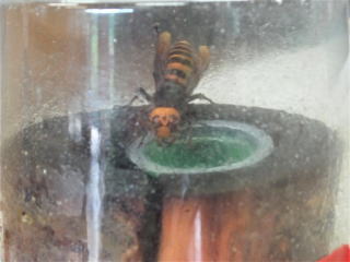 館長の後北先生による“里山とは”の座学でスタート。先生の子供の頃の里山体験を織り交ぜながら里山の仕組み、人間社会とのつながり、現状、などの説明を受けた。様々な昆虫や生き物を食べる生態系の最上位のオオスズメバチの女王蜂の実物が登場してみんな驚きの声を上げた。体長4.5cm、顔を正面から見ると迫力があった。グループ学習の“池の周りの人間の土地利用について”では4つのグループに分れての開発について、「こうしよう」「いや、こうした方がいい」と検討し、それぞれの結果を発表した。