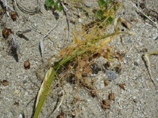 外来種のアメリカネナシカズラにからまれて身動きできません