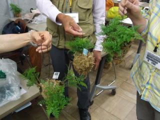 話の後は“つりシノブ作り”を楽しみました。材料はシノブ(ミニダバリア)、ミズゴケ、木炭、糸、針金等で準備OK一斉につりシノブ作りに取り掛かる。「これでいいのかな」「これからどうするの」とワイワイガヤガヤ。2~30分で完成、出来栄えはどうですか?