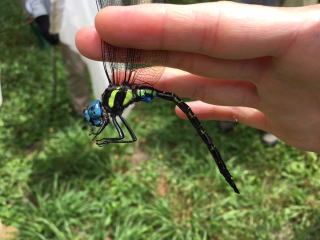 先生が採集したヤブヤンマ。青い眼を見るのは先生も初めてらしいが、決して外国生まれではありません。