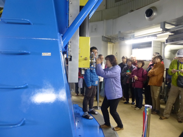 谷町4丁目地下鉄駅からすぐの大阪合同庁舎4号館内の大阪管区気象台へ。こんな所に気象台があるとは大阪生まれだが、今の今まで知らなかった。入場は比較的厳しく誰でもがビル内には入れず、事前に入場申請し、ICチップ入りの名札型カードを受け取り入場できる。16Fの会議室に集合し、担当者の方からの挨拶の後、気象に関する簡単クイズ(気象庁の予算は国民1人当たりいくらか)で始まった。気象庁は国土交通省に所属し20年、現在の職員数は5000人で、思ったよりも少ないと感じた。地震と津波の話で日本は常にプレートの圧力を受けている。津波の速度は発生時が800kmで浅い方向へは速度が遅くなる、まぁ~それでも陸地到達時点では30kmになる。次に現業室を見学。ここでは実戦部隊がモニターを見ながら天気、地震を監視している部屋に入れていただき説明を受けた。地震発生時は震源地をコンピュターが自動的に算出して「ここ」って教えるのかと思っていたが、実際は人間が携わらないと最終的には場所を特定できない。見学の最後、アメダスに設置されている我々がよく目にする雨量計、風速計、温度計などの実物を前にして計測方法の説明を受ける。