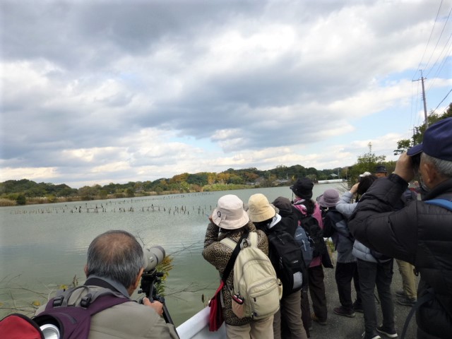 昼食後、中々難問な[野鳥クイズ]に全員で挑戦です。10問中7問正解の方が2名で最優秀でした。水上池ではたくさんの水鳥(カワウ、カルガモ、オオバン、ハシビロガモ、ヒドリガモなど)に出会えました。向こう岸ではキセキレイ、ハクセキレイが元気に飛び回っています。人懐こいコハクチョウの綺麗な姿も近くで見ることが出来ました。約38種類の野鳥との出会いも有り、有意義な1日を過ごすことが出来ました。(1班作成)