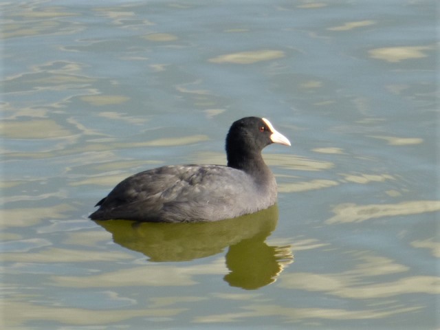 水上池のオオバン。オスとメスが交代で抱卵します。