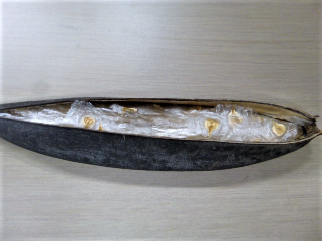 カエンボク(火焔木)の種。円盤状の薄皮に包まれていて風で散布される。