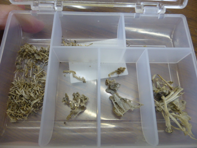 トラフズクが吐き出すペレットの中にアブラコウモリの骨がたくさん見つかりました。