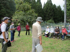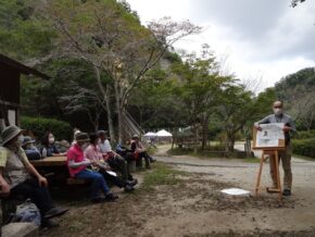 昼食のあとは都市公園と自然公園の違いや大阪府民の森について野外講座です。自然公園は都市の公共施設である都市公園と違い、自然の景勝地の保護や生態系の保護、生物多様性の確保を目的とするなど時代の流れに伴い変遷してきた。現在、府民の森として9園地あるが自然保護だけでなく植栽もして環境学習の場として利用されているということを学びました。