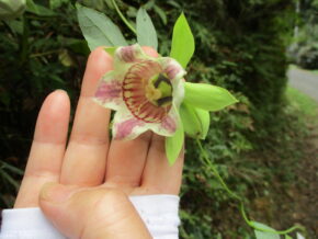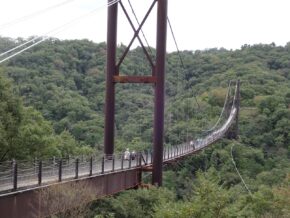 ピトン小屋から約30分で目的地の「星のブランコ」に到着。「星のブランコ」とは全長280m高さ50mの国内最大級の木床版人道吊り橋です。皆さんその高さに驚き、最初はこわごわ渡りはじめましたが真ん中ではスリルを味わいながら眼下に広がる緑の景色を見て空中散歩を楽しんでいました。4人の先生による丁寧な説明やガイドで楽しく無事終えることが出来ました。(T.K)