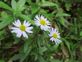 午後からは、流谷へ向かって散策開始。よく似た草花のノコンギク、ヨメナの見分け方は、葉の形状、冠毛などを見て確認するがなかなか難しい。アキノタムラソウ、クワクサ、黄色で愛らしい花のノアズキ、つりがね型で花冠の先が反り返るツリガネニンジンは、果実が5角形と特徴がある。淡い紅紫色のキツネノマゴ、淡黄色のアキノノゲシなど沢山の植物をゆっくり丁寧に教わり天候にも恵まれ充実した講座終了となりました。(S.N)