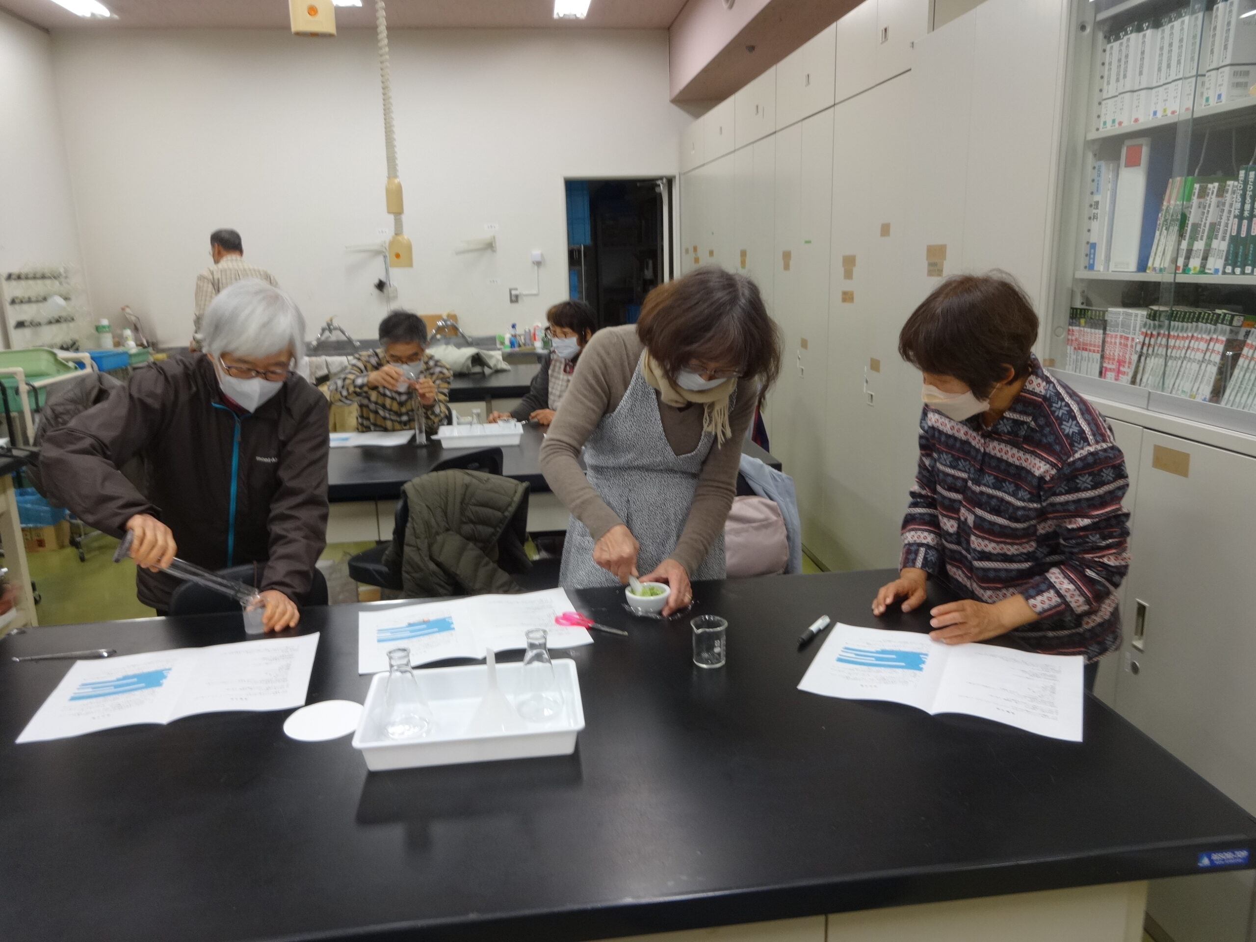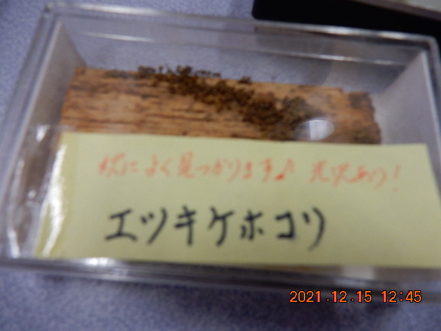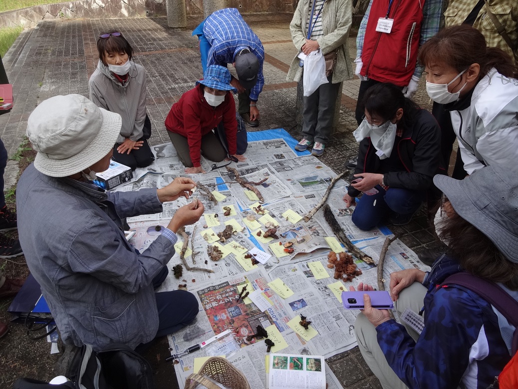 午後はふれあいの森の中を観察と採集にスタート。今は見つかる数が少ない時期にあたるが気持ちは前向きにと森の中に入って行った。シイタケ栽培木に付いている個体を見つけた「ムラサキホコリ」と同定やったー!それから木をひっくり返しひっくり返して見つけたと判定はキノコです・・・残念!ひたすら朽ちた倒木を探し回るのはまるで宝探しのようです。見つかるのはほぼキノコ類でロクショウグレラキンとかヤマンバノカミノケなど変な名前のキノコでした。教室に戻って先生持参くださった個体を顕微鏡で観察し子実体の形態の不思議、美しさや動いているのに講座生も更に興味が湧きました。粘菌ロボットや粘菌コンピューターのへの開発が模索されようとしている。ぜひ期待したいと結びました。(hiro)