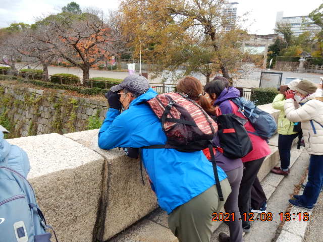 午後は、光明池緑地でのシダ植物の観察。細い道を分け入ってシダを見つけては、名前を忘れないように呪文のように繰り返しながら資料とにらめっこ。階段の隅にくっつくようにして育つマツバランは、茎だけで葉も根ももたない。ひっそりと立っているフユノハナワラビは、夏場休眠し秋にワラビのような花穂のような胞子葉が伸びることから名付けられたそうである。お正月飾りに使うウラジロの群生地など沢山の種類のシダ植物を観察。皆さんいったい何種類の名前を覚えたでしょうか。(S.N)