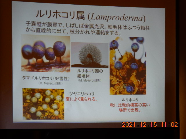 コロナ禍、何回も延期中止になっていた念願の「粘菌の観察」講座が開講できました。粘菌とは?英語でSlime Mold(ネバネバした菌)の和訳でアメーバ細胞やその集合体が分泌していることから名付けられた。近年、DNAを調べる手法が進歩したことにより、粘菌は植物でも動物でも菌類でもない生き物!であり、単細胞のアメーバ細胞を有する「アメーバ動物」というグループに属することになった。世界では変形菌(真性粘菌)が1000種以上日本では約600種が確認されているらしい。子実体から風で飛ばされた10ミクロン(0.01ミリ)の胞子は成層圏まで上がることも確認されており、変形体は一時間に数ミリ~数センチも移動可能でき、バクテリアやキノコを餌とする事によって植物の分解を遅らせ森の生態系を維持する自然界での役割を果たしている。そして粘菌は「森の宝石、森の妖精、森の魔術師」などと呼ばれてますよと川上先生は可愛げに言われてました。彼の南方熊楠(ミナカタ クマグス)の研究や「粘菌が迷路の最短の道を選び移動する発見」でイグノーベル賞を受賞したことも面白い話題で、データでは色々な変形体の写真見せてもらい興味が湧いてきました。