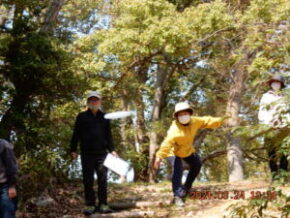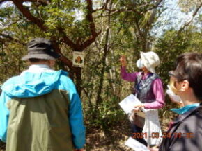 今日は昨年の9月錦織公園での野外観察、10月の堺街歩き~浜寺公園バラ鑑賞以来5ヶ月振りでの皆さんとの久しぶりマスクの中からの笑顔の再会ができました。今日は絶好のお天気で信太山駅から30分ひと汗かいて到着しました。午前は3グループ分けしオリエンテーリングを開始。園内の信太の森ハイキングコースに12ポイントの地点が隠されていて、地図で各ポイントをまずは見つけて、そのポイント毎にクイズの設定があり、それを解答しながら歩き回るゲームです。例問題はこの木は葉っぱをくしゃくしゃにすると匂いがし、あるものの材料に利用されてます。また、この木はシャシャンボかヒサカキか?このフジの木はヤマフジとノダフジのどちらでしょうか?これはツルの巻き方で見分けるのですが、右巻き左巻きで最後まで納得できなかった方もいましたね。