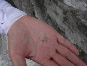 貝の化石の取り出し作業中 コツコツ頑張ってます