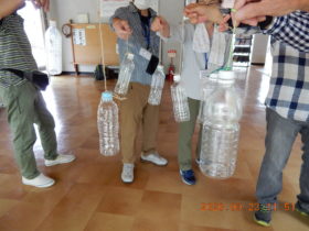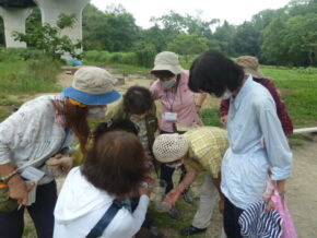 ・昆虫グループ・・・午前は先ず【もんどり】を仕掛け、クマゼミの産卵を実物と動画で見て、枯れ枝に産卵する事を初めて知った。目からウロコでしたね。昆虫で一番長生きするのがセミ(卵から成虫になるまで6~7年)と知ってこれもなるほどなぁと納得。次にペットボトルで悪戦苦闘しながら虫かご作りに挑戦。残念ながらもんどりに虫たちは入ってくれませんでした。その後網をもって虫取りに挑戦しましたが、15、6種類ぐらいの成果でした。井上さん独特のご指導で楽しい一日でした。(S.H)