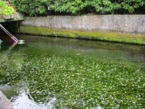 雨に降られ疲れ気味ながら、清涼を求めて醒ヶ井・地蔵川で梅花藻を見学。人通りは少なく閑散とした雰囲気で、ゆったりとした時間が流れていた。初めて梅花藻を見た方も多く心が癒された。無事予定時刻に到着し9月の再開を楽しみに解散となった。早朝より一日お疲れさまでした。(S.N)