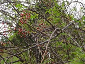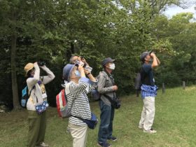 ・野鳥観察グループ・・・先生によればこの季節は鳥が少ない時期ということですが、エゾビタキ、コサメビタキ、キジバト、ヒヨドリなどが見られ、それぞれの体や羽の特徴、好む木、歩き方などの説明を受けました。帰り際にコゲラ、メジロ、エナガ、ヤマガラ、シジュウカラなど違った種類の小鳥が沢山 集まって行動する「混群」と出会い、不思議な生態を観察することが出来ました。(T.K)