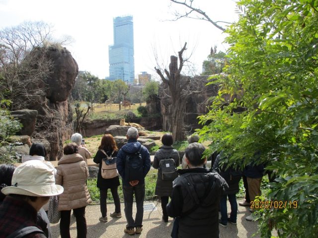 いよいよアフリカサバンナゾーン園内ガイドツアーへ。水中にどっしりと座り、水面から顔だけを出し身動きせずひたすらじっとしているカバ。微笑ましい姿にほっこり気分。立派な角を持つサイ。角は自分で岩などの固いものにこすりつけて余分な部分をそぎ落とすそうです。柔らかい日差しの中、仲良くお昼寝中のライオンなど見学。動物園は子どもだけでなく大人も楽しめ心を癒してくれる場所である。また動物たちに会いに来たいと思いながら講座終了。(S.N)