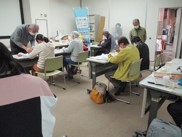 2年目講座は検温、手指消毒、マスク必須の中でのスタート。資料館の多目的ホールも蜜を避けるため、机にアクリル板設置、部屋は解放状態で使用するなど感染予防対策が実施されていました。