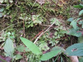 コモウセンゴケ 葉の表には粘り気のある腺毛が密生している