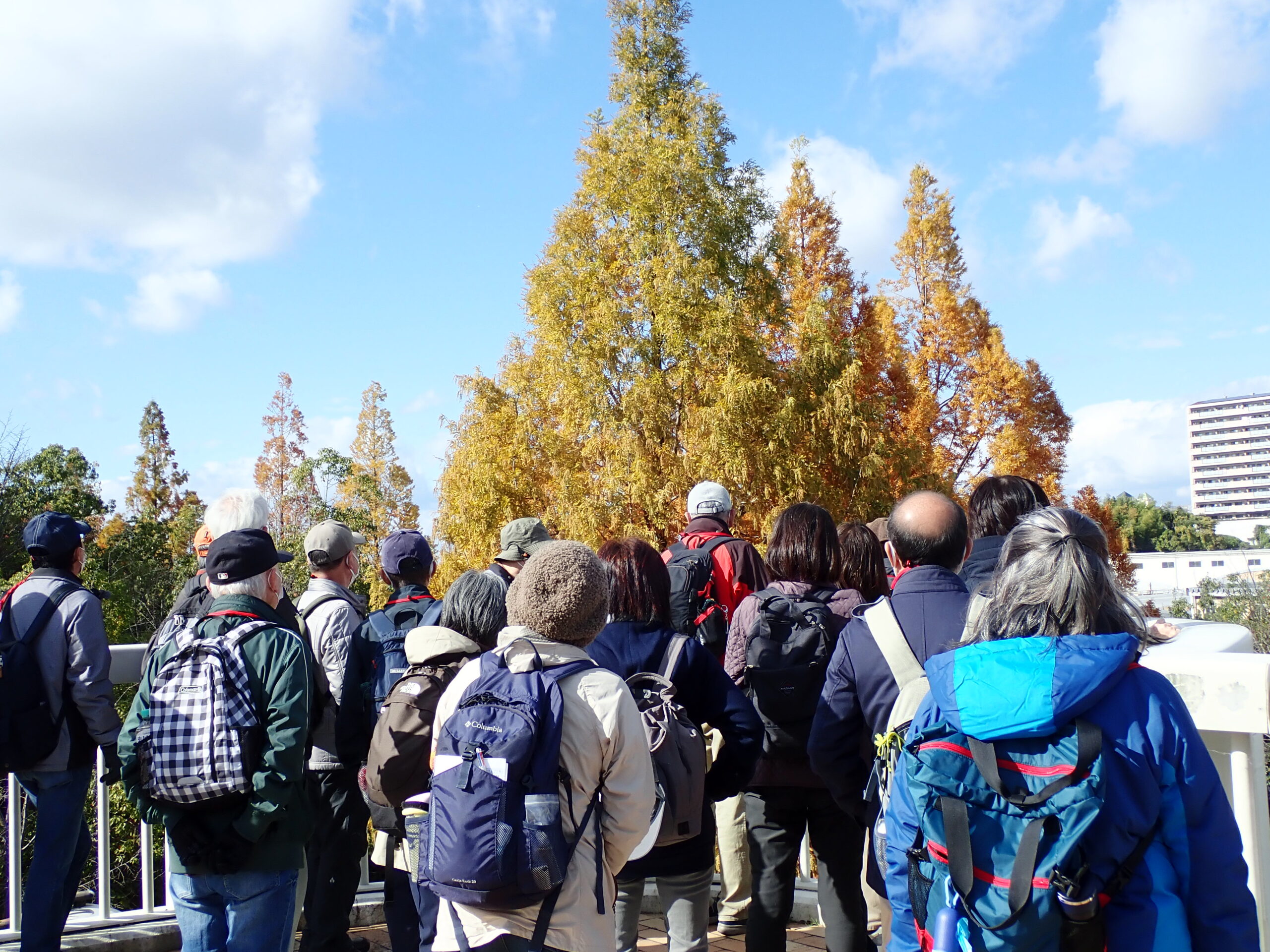 大阪狭山市駅に集合してさやか公園に向かい、現地に到着していたメンバーと講師の先生と合流し、時計回りに歩きながら野鳥観察を行った。