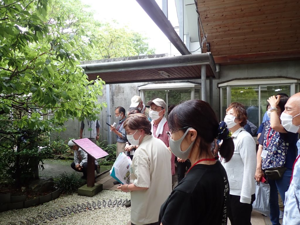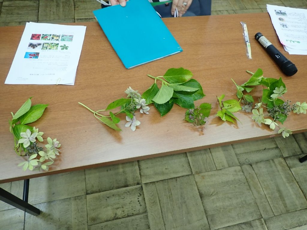 午後は池田先生によるセンター内の植物ガイドでした。センター内には数多くの草本、木本があり、見慣れた植物でも改めて解説を聞くことで気付かされることが有り勉強になりますネ。紫陽花の花後の剪定方法や挿し木のやり方などの実用的なお話も有り、生憎と天気は悪かったが充実した一日でした。(T.O)