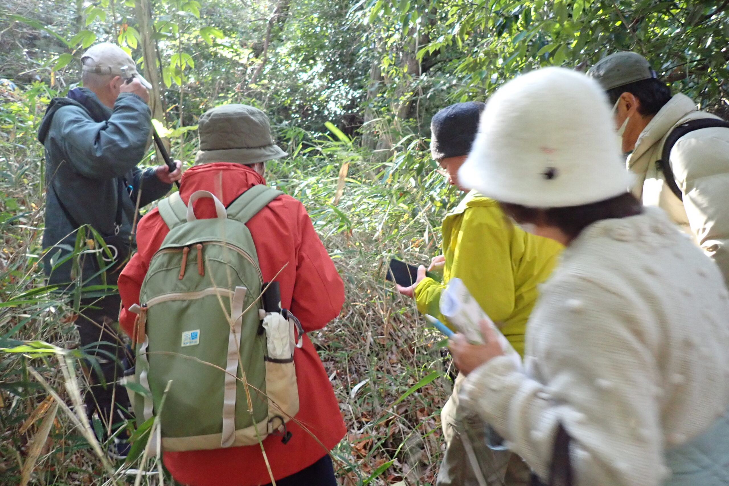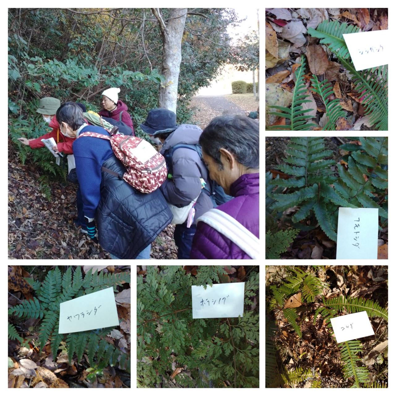 午後からは光明池緑地へ観察に出かけた。注意深く観察しなければ、みんな同じ「シダ」に見える。講師は的確に様々なシダの生えているポイントに連れて行ってくれ、そして名前を教えてくれた。冬の公園緑地の灌木や茂みの中、道なき道を進む。蚊やハチの心配なく、ガサガサ・バキバキと落ち葉や枯れ枝を踏みながら進む、童心に戻って林の中を歩くことができて楽しかった。