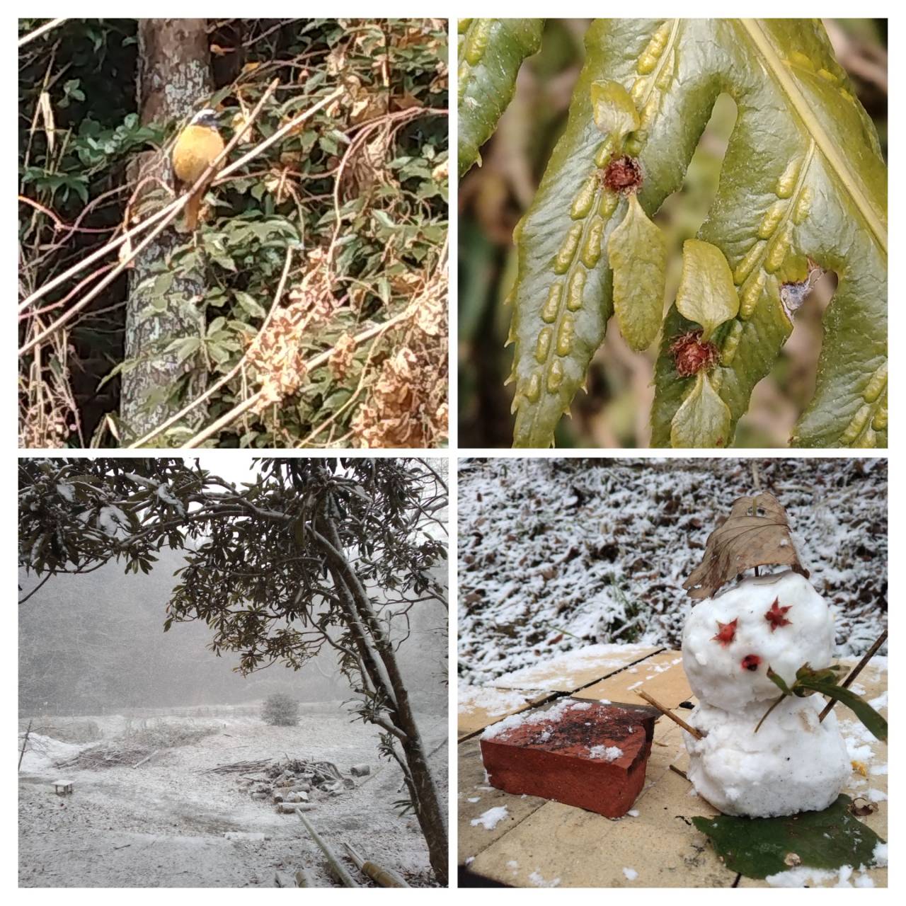 奥の谷は自然あふれる。ジョウビタキ・コモチシダ・雪景色にかわいい雪だるま。