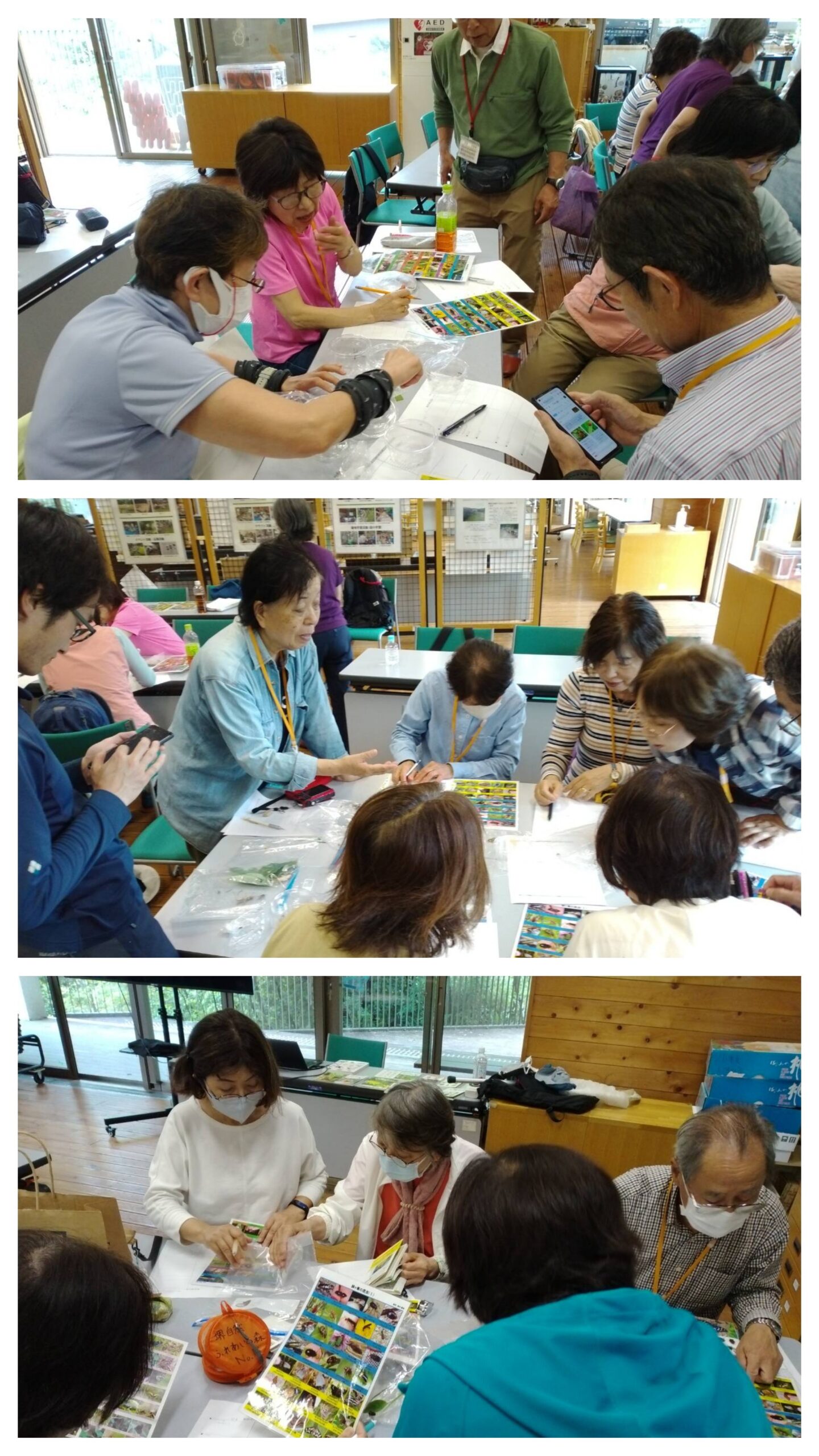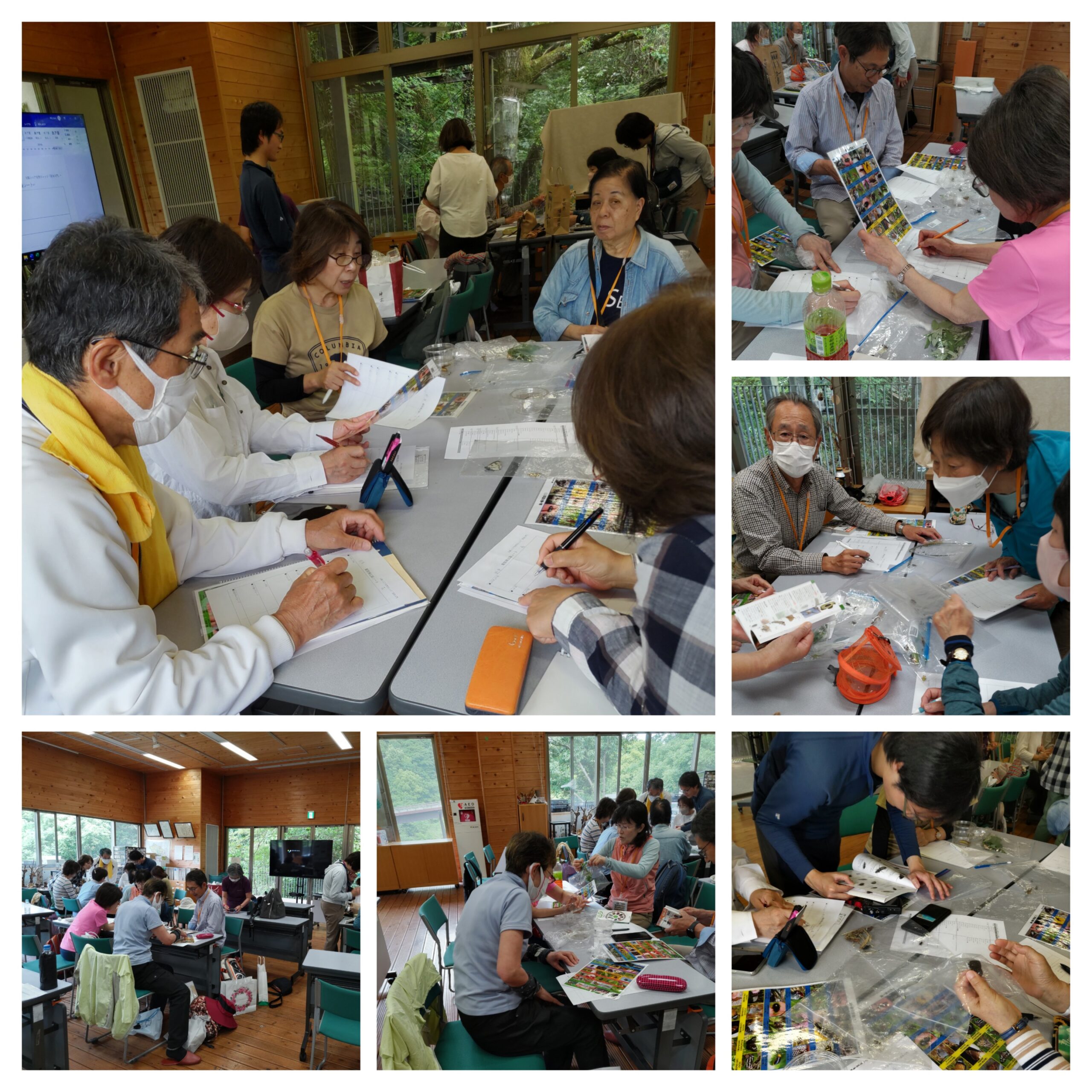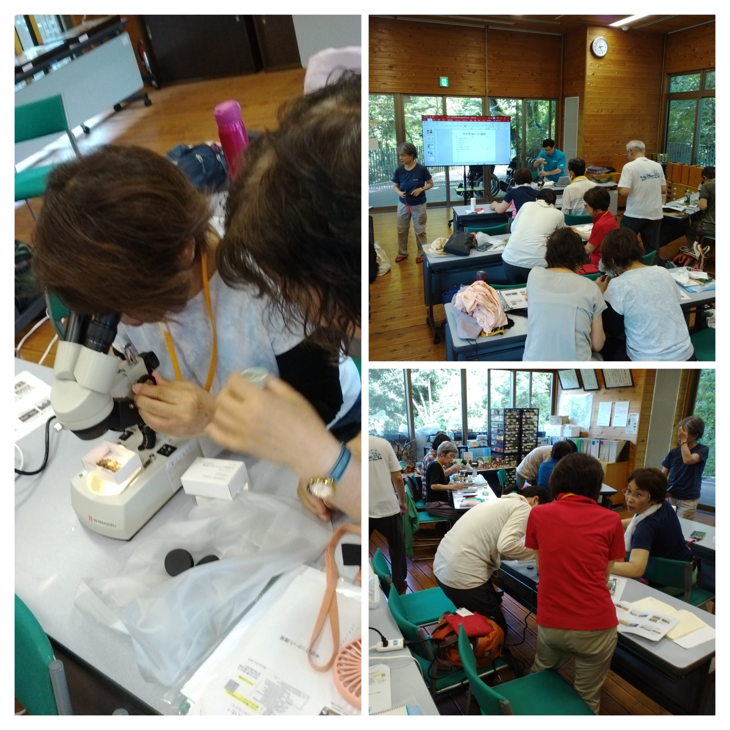 その後、森の館に戻り、顕微鏡を使ってみんなで同定作業に取り掛かった。短い時間なので?もあるが、正確な同定は後日川上先生が連絡してくださると、楽しい約束をしていただき講座を終えた。それぞれ、スマホの中に「森の宝石」をしっかりとらえることができたでしょうか?(K.T)