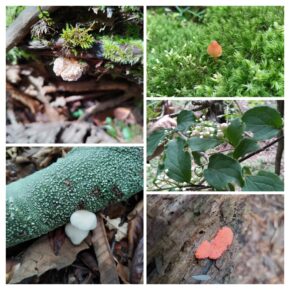 シロウツボホコリ、ウツボホコリ、マメホコリ、ツノホコリ、フシアミホコリ?、ススホコリのなかま、アミホコリ、モジホコリのなかま、白い変形体、ススホコリ?の変形体、チャコムラサキホコリ? 以上11種
