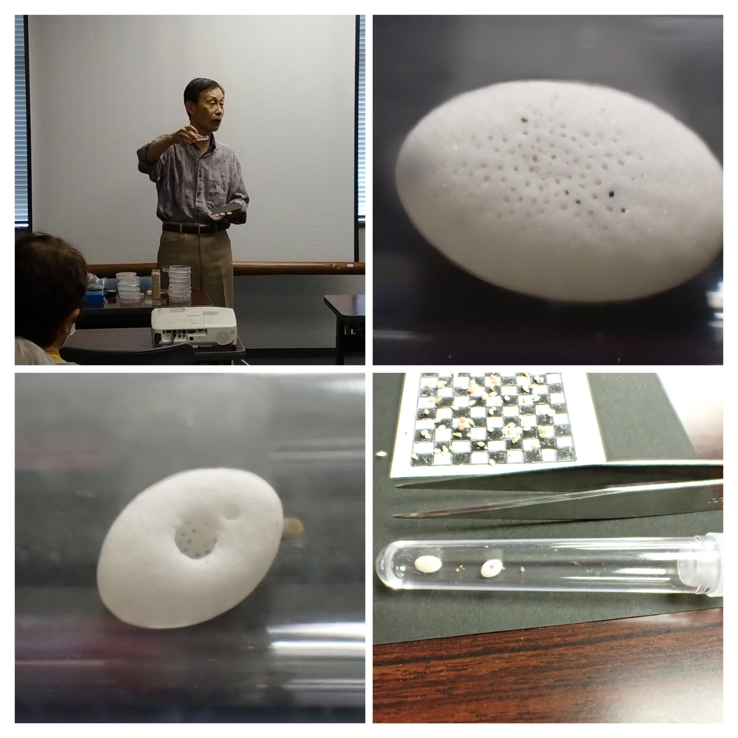 大阪シニア自然カレッジは自然を学ぶ集まり。ただ自然を知るだけはなく、自然を感じ、考え、行う学びが大切だと言う。微小貝を窓として、その奥に広がりつながる大自然や多くの命、そして自己の生き方を考え深める観方とは何か。それを考えるのがシニアの自然観察の在り方ではないかという先生の言葉は、これからの大きな宿題だなと感じた。いただいた微小貝曼荼羅の資料をじっくり読んでみようと思う。