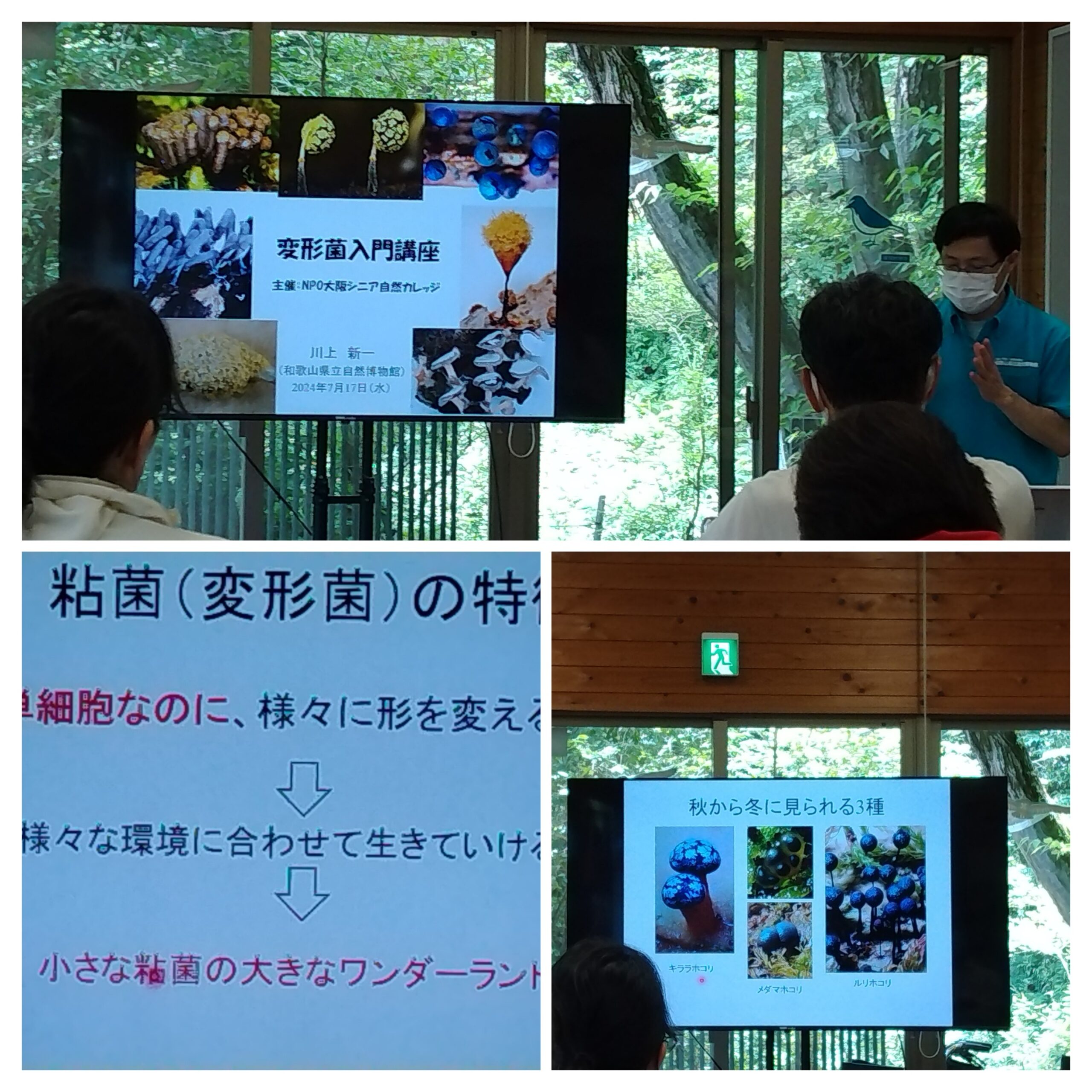 今回の主役は「森の魔術師」「森の宝石」または「森の妖精」「癒し系微生物」などのニックネームを持つ粘菌(変形菌)。前週の講座「微小貝」で小さなものから大自然、生命を見るという視点について学んだが、今回はまさに小さな単細胞生物、粘菌について講義を受けた。