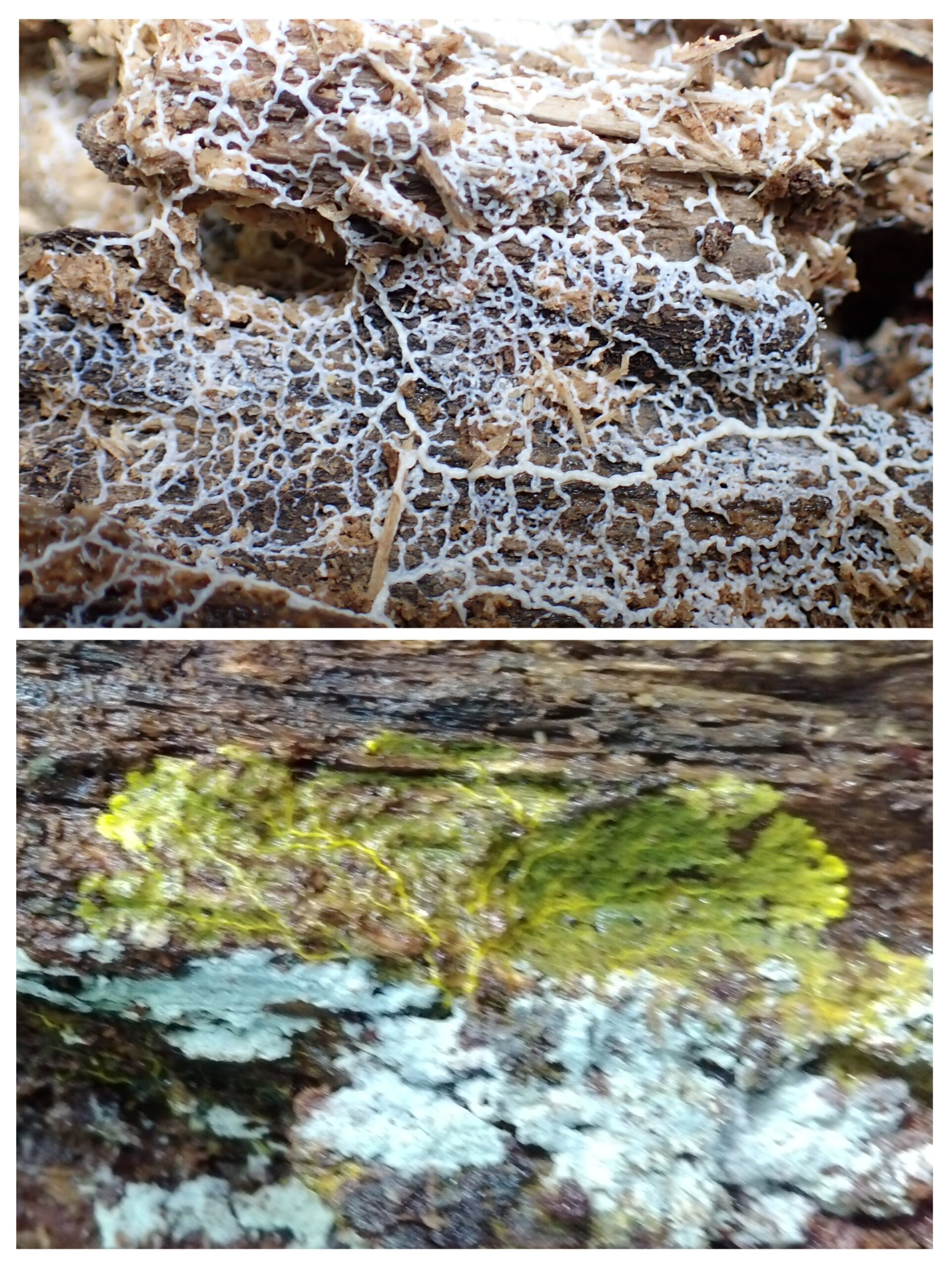下 白い変形体の子実体 ソラマメモジホコリ?(翌日、参加者が確認)