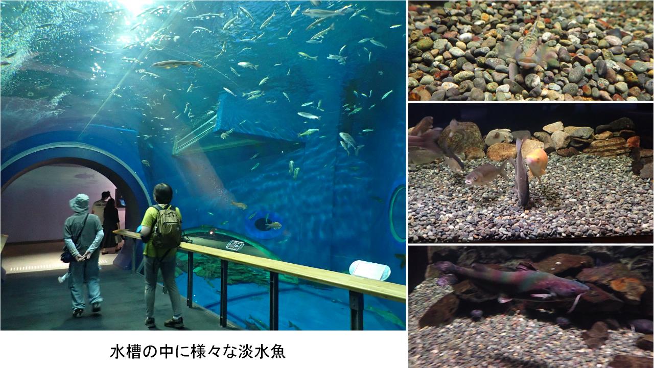 午後は琵琶湖博物館と水性植物園の見学。琵琶湖博物館では古代湖である琵琶湖の地質、生き物の歴史、人の暮らしなど広範囲の展示がされていた。特に淡水生物の水族展示室では昨年の水槽破損事故からクラウドファンディングで支援を受けて再生されたというアクリル水槽で身近なコイ、フナからビワマス、ウグイ、ハス、スゴモロコ、コアユ、ビワヒガイなど豊富な展示を見ることができた。