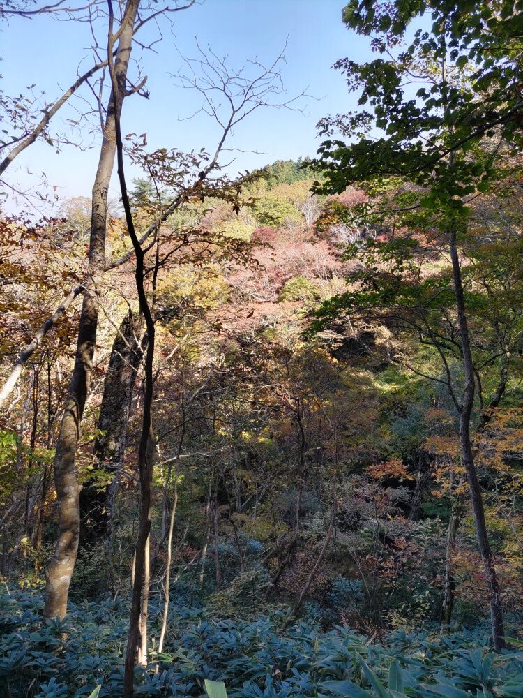 ブナの自然林は減ってはいるが、和泉葛城山の山頂付近ではブナに加えコナラやカエデやリョウブなどが色とりどりに見事な紅葉を見せてくれた。天気に恵まれて暖かな楽しい一日であった。(H.I)