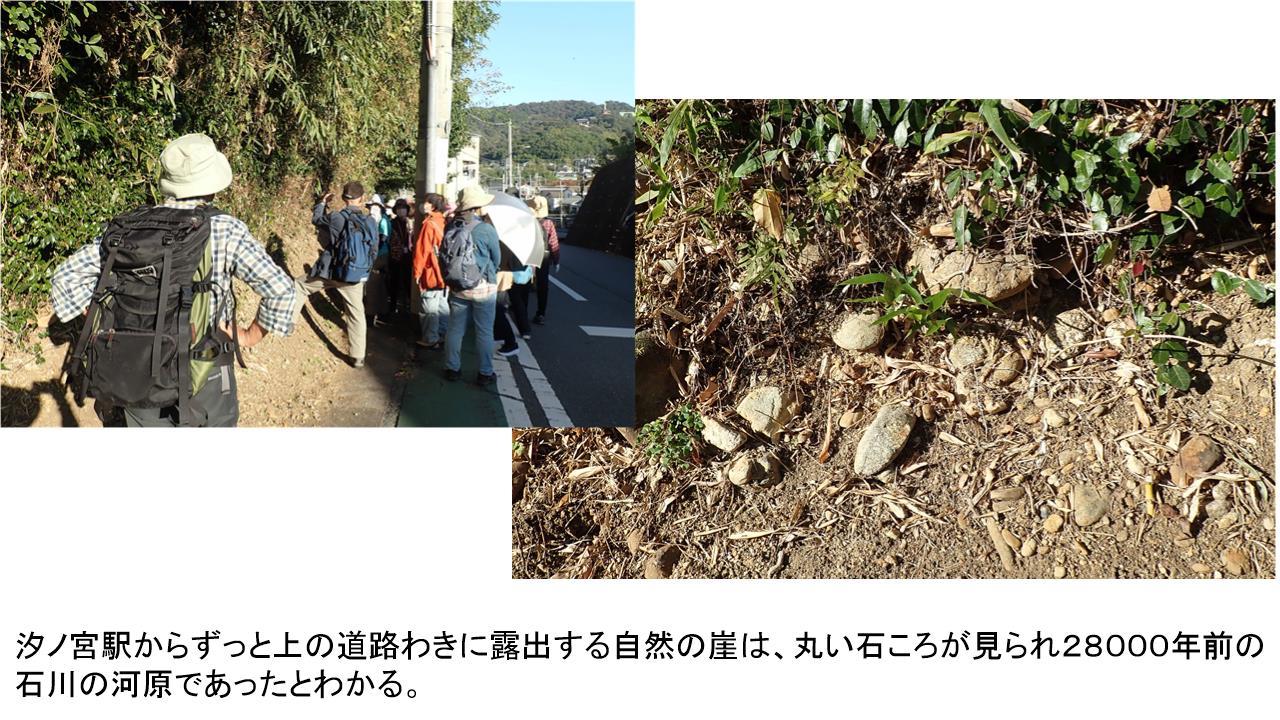 晴天に恵まれた気持ちの良い秋の一日、汐ノ宮で地質観察を楽しんだ。