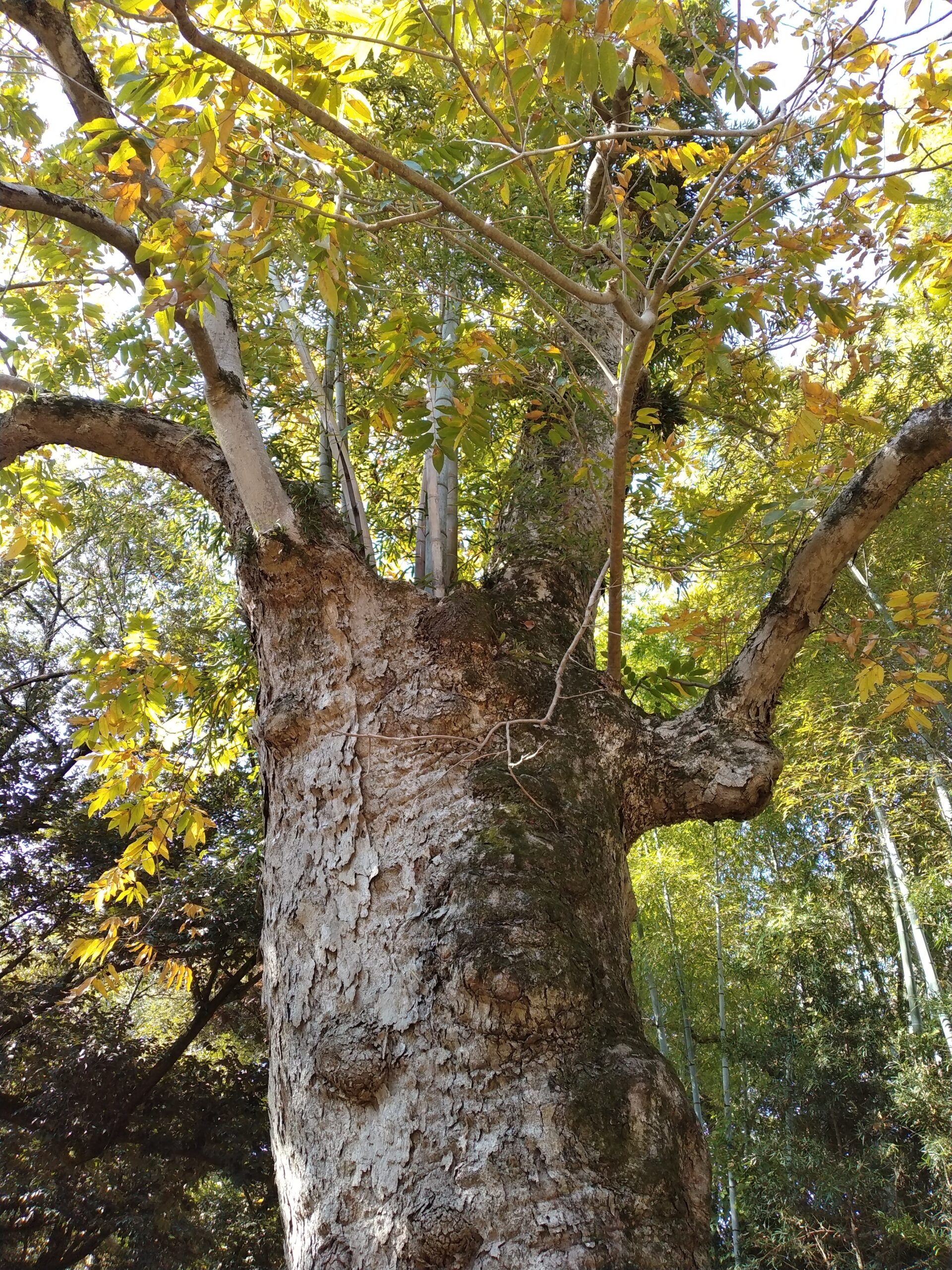 ムクロジの巨樹、中の空洞には立派な竹が。ちょっと心配。
