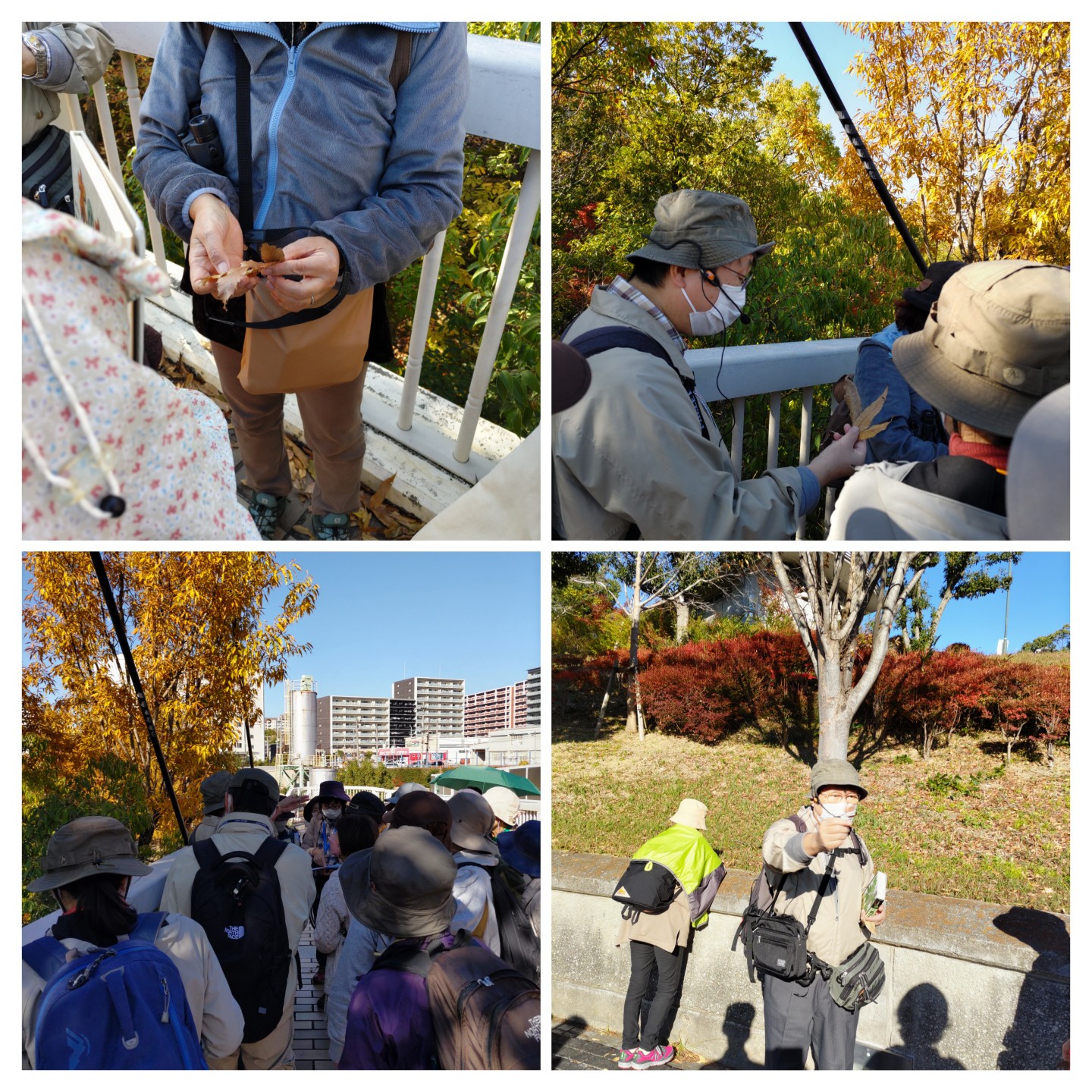 紅葉と冬芽の知識を得て、午後から泉北高速線和泉中央駅から桃山学院大学のある宮の上公園までの約2㎞を樹木の紅葉や冬芽の解説を受けながら歩いた。