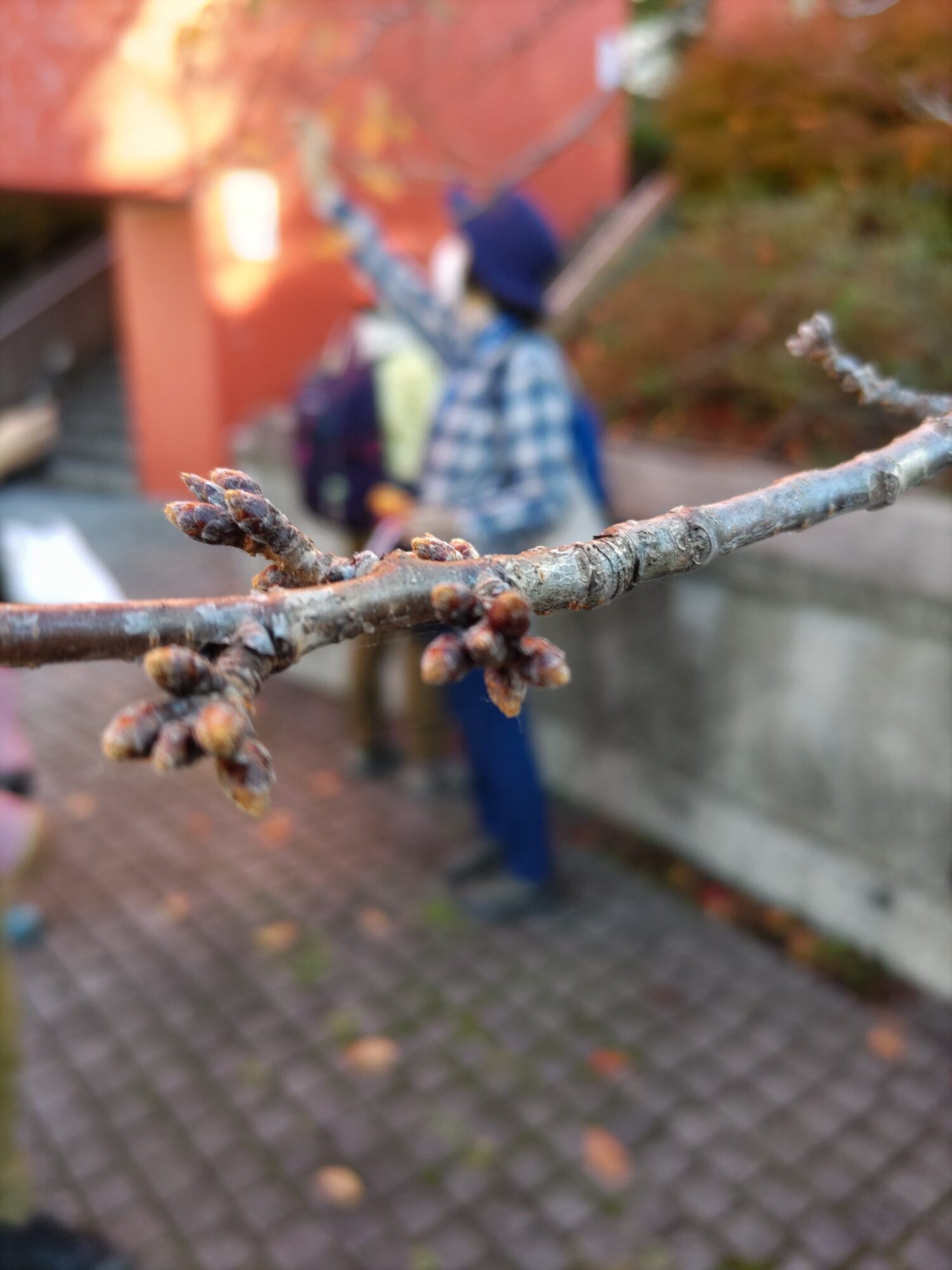 見逃してしまう街の風景の中にも、足を止めて見つめてみると気づかなかったものが多くあることを知った。サクラの冬芽を見ながら春に咲く花や緑葉に覆われる姿や季節を思い、ホッコリとした暖かな一日だった。(H.I)