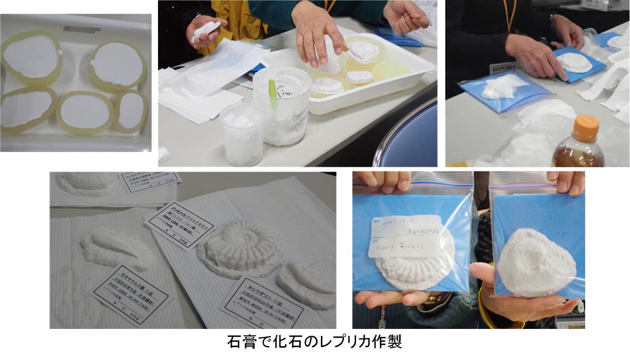 話題が豊富で話し好きの講師の話は尽きなかったが、化石のレプリカ作製は事前に準備万端整えていただき講座生は楽しんで作業できた。石膏が固まる間には講義を続けていただき効率良くお昼前には完成した。