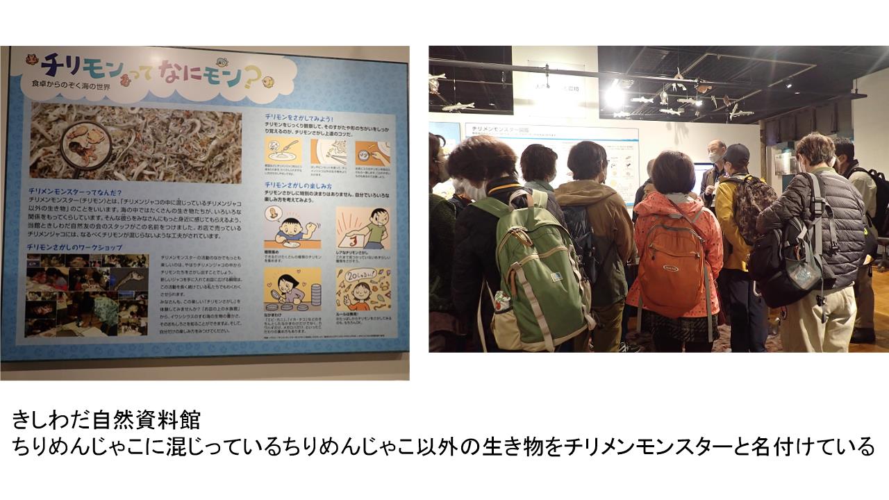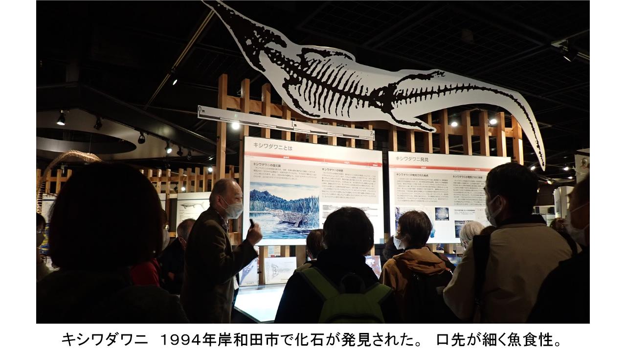 午後は、きしわだ自然資料館に移動し2階の展示室で解説を受けた。チリメンモンスターから始まりキシワダワニ、モササウルス、ナウマンゾウなどの展示をゆっくりと時間をかけて見ることができた。