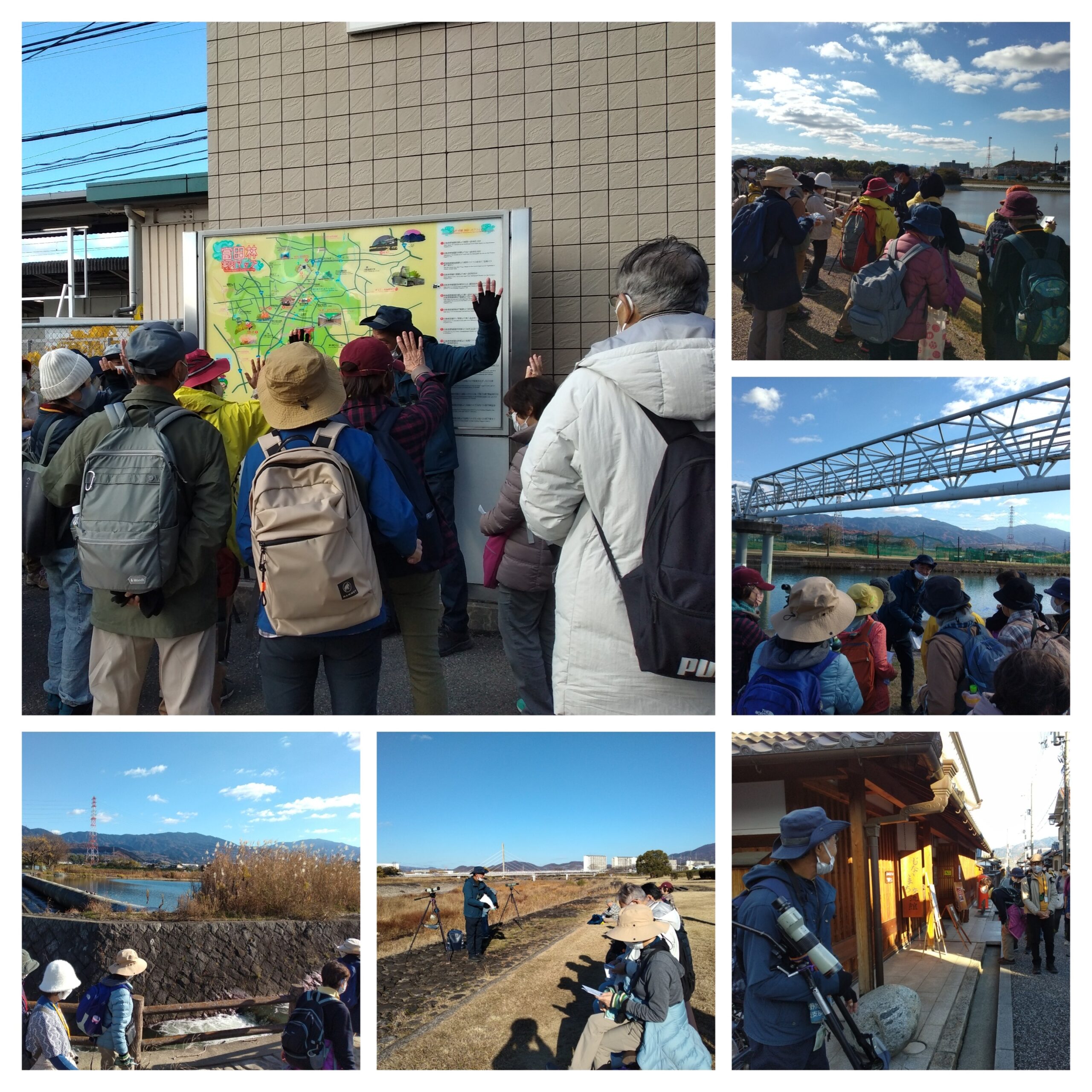 12月とは思えないような良い天気に恵まれ、さらに上村先生曰く、こんなにたくさんの野鳥に出会えるとは予想外。超ラッキーだったようだ。集合の喜志駅で野鳥ミニ図鑑を頂き、コースの説明を聞き、いざ出発。最初の観察場所、農耕地では、ハクセキレイ、アオサギ、ヒバリ、モズ(雄)、チョウゲンボウ、タヒバリ、モズ(雌)を観察。ハクセキレイはかの古事記ではイシタタキと言われているとか。確かに尾を上下に動かしながら移動する姿は石をたたいているようで可愛い。またチョウゲンボウもよほどお気に入りなのか、飛び立っても必ず同じ家の屋根の同じ場所に戻ってくる。おかげでその姿を望遠鏡でじっくり観察することができた。羽の色や顔の模様の可愛いこと。モズもしっかり観察できた。