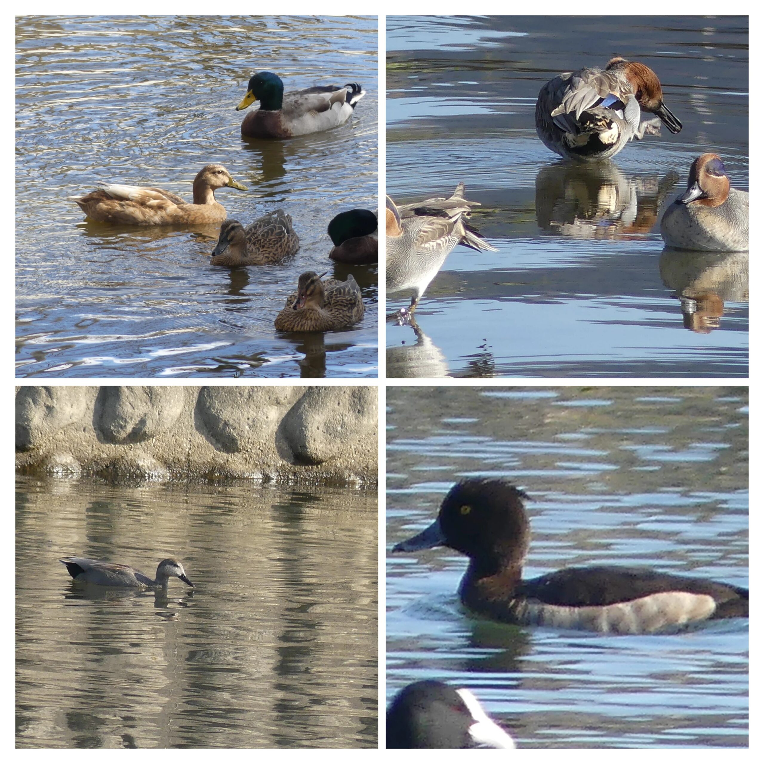 右下:キンクロハジロ(金黒白3つの色を持つ鳥)