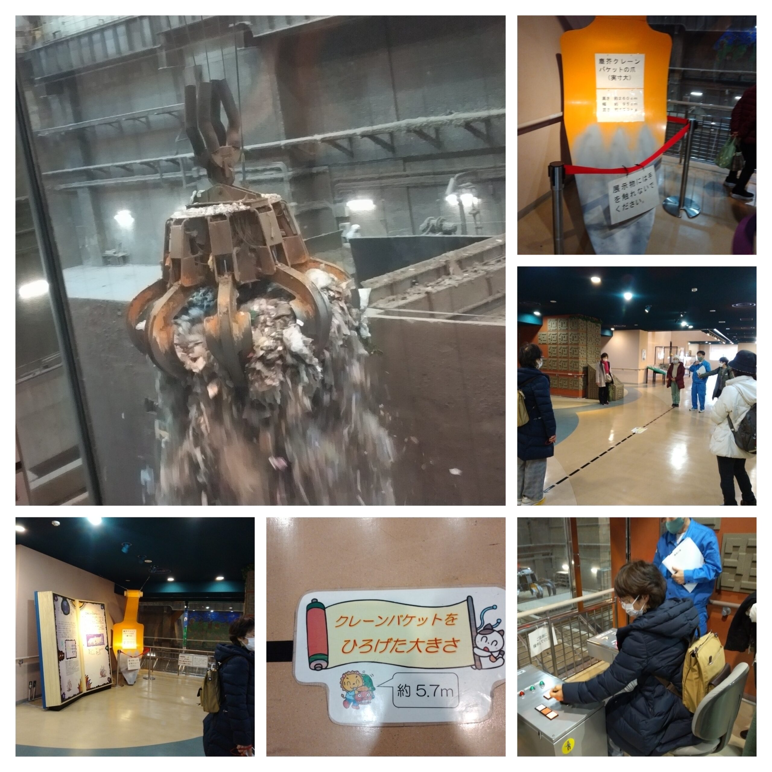 舞洲工場 巨大クレーンでゴミをひとつかみ、みんなで輪になって大きさを実感
