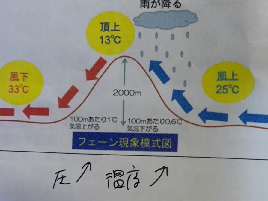 はじめに、四季を作る日本周辺の高気圧の特徴ですが、冬のシベリア高気圧や夏の太平洋高気圧など親しみのあるところ始まりました。貿易風により高気圧、低気圧が動いていくこと、海水温も絡みながら梅雨、フェーン現象、集中豪雨(線状降水帯)、台風の発生、冬に日本海で大雪をもたらすJPCZと1年間に起こる気象の仕組みを丁寧に教えてもらいました。また。世界的な海面水温の影響(エルニーニョ、ラニーニャ)により大きく天候の変動が起きることも学びました。
