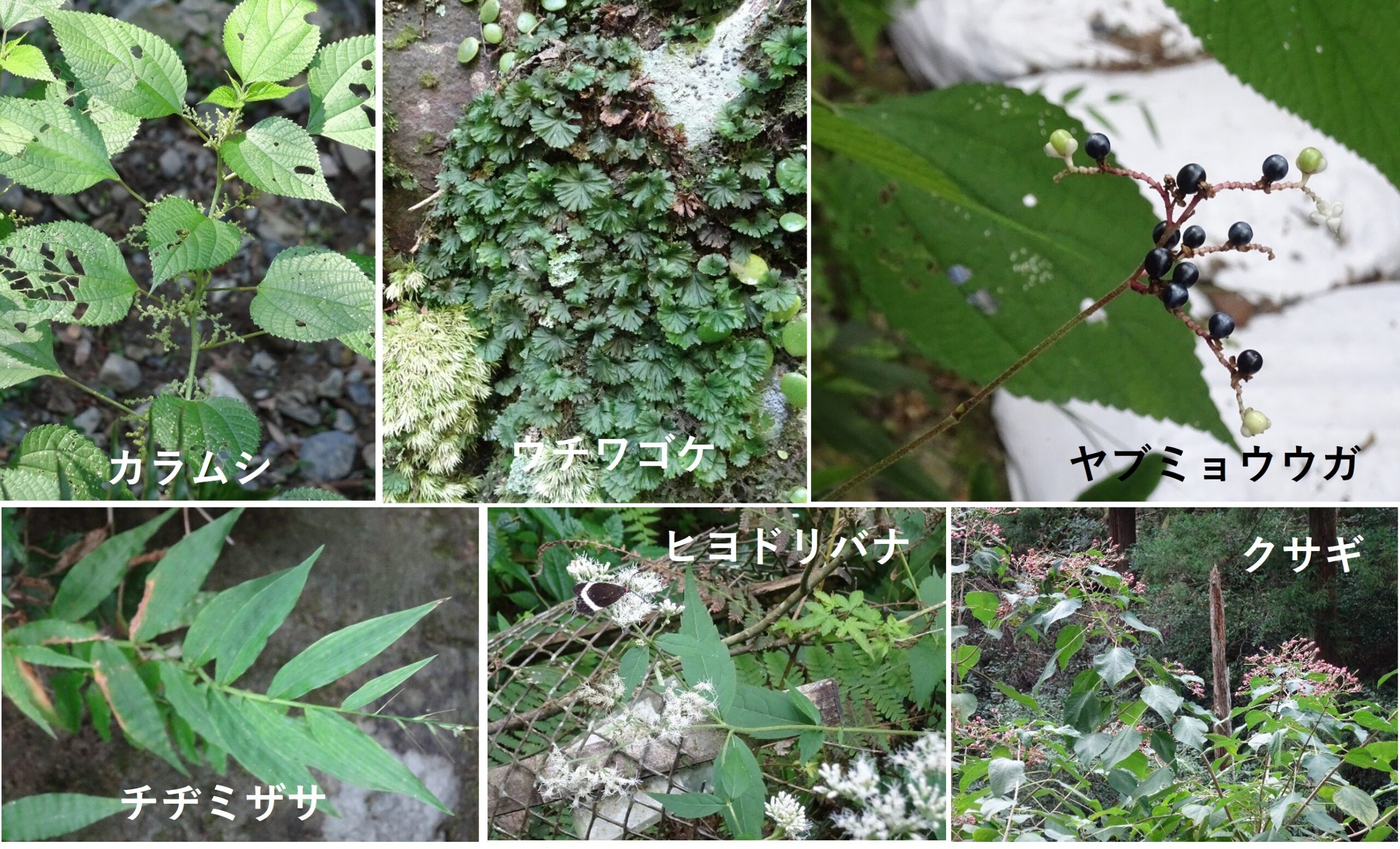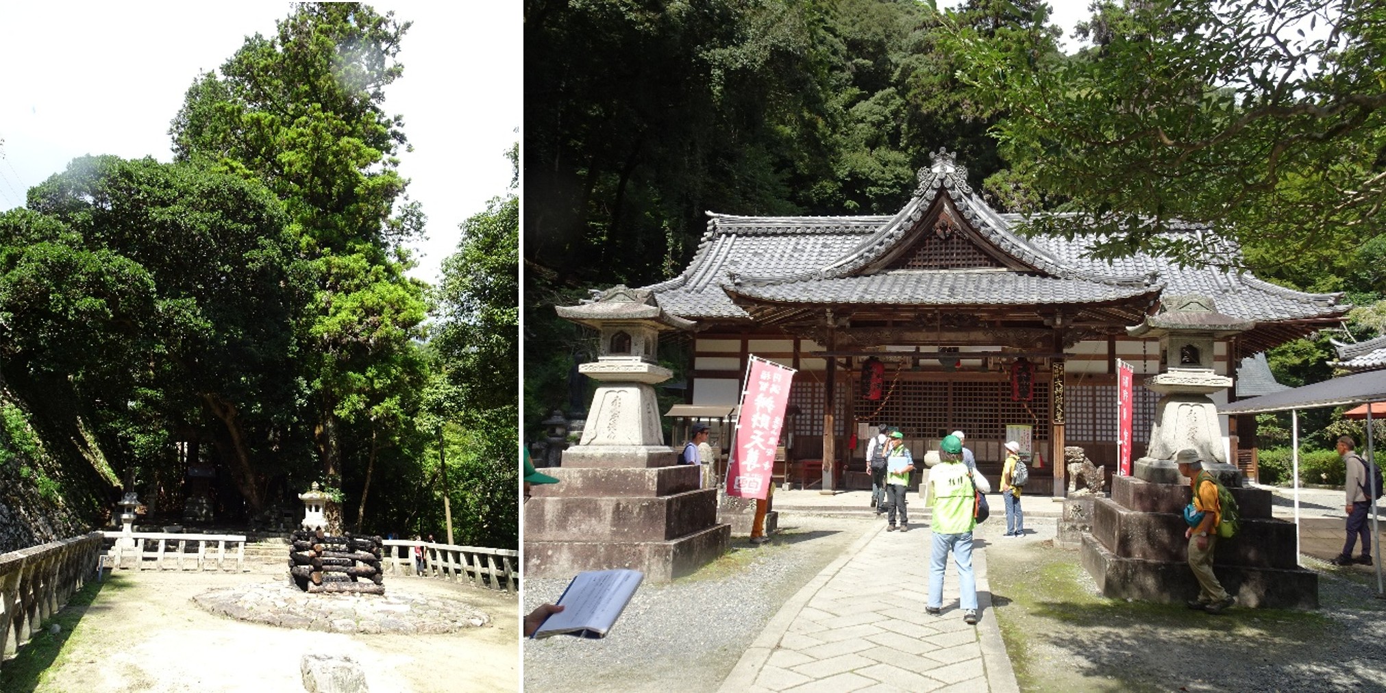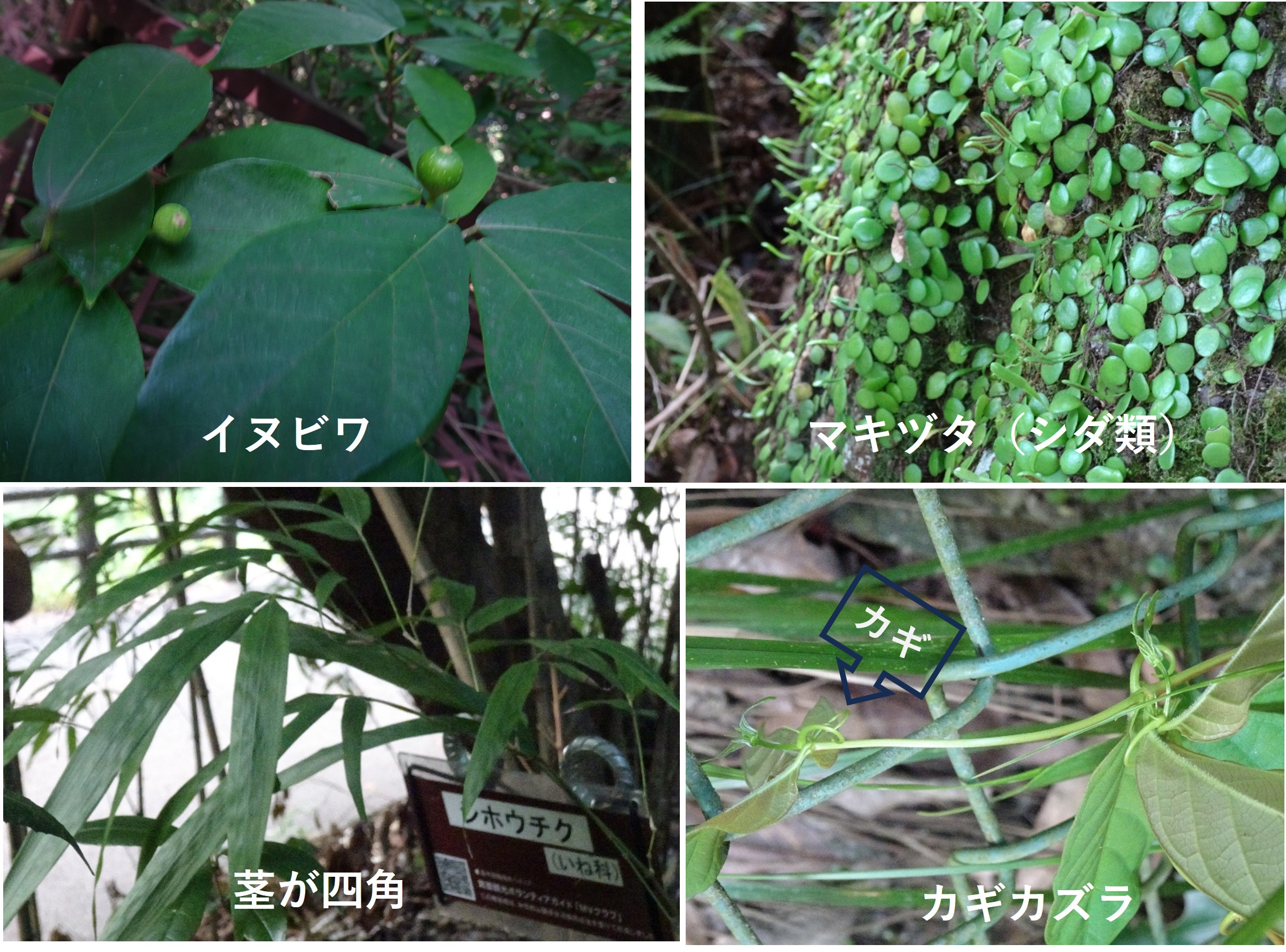 名物、モミジの天ぷらはイチギョウジカエデという種類のみで1年間塩漬けし、灰汁と塩を抜いてから揚げる手間がかかっているそうで、1300年の歴史があるとか。帰りには皆の土産になりました。ガイドさんは、散策道沿いのいろいろな植物の説明をしてくれました。イヌビワの実に寄生するコバチの話を聞いて、高槻のJT生命誌研究館の講義を細い葉の裏に胞子をもつマキヅタについては堺のシダ観察を思い出しました。ほかに茎が四角いシホウチク、かぎ状のツタをもつカギカズラ、カラムシ、ウチワゴケ、チチミザサやヒヨドリバナ、クサギなどたくさん観察することができました。