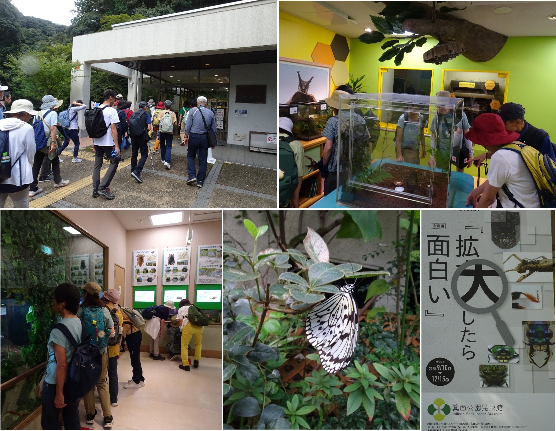 龍安寺に着くと、1300年前の役行者の修行や、空海・日蓮が訪れたという話と、歴史観があふれる建物を見ることができました。護摩壇があり宝くじを行うこと、日本で最初の弁財天なども知りました。さらに途中、野口英世の像や断層があり、自然と歴史の見どころが満載でした。その後、大滝に着いて、記念撮影してお昼ご飯を食べて、来た道を戻りました。龍安寺でガイドさんと別れ、昆虫館に入り、世界の昆虫、小さくて見えない昆虫、飛び回る蝶等を観察して帰路につきました。往復5kmは多少疲れましたが、多くの自然と歴史に触れることができ箕面の奥深さを知る一日となりました。 (M/Y)