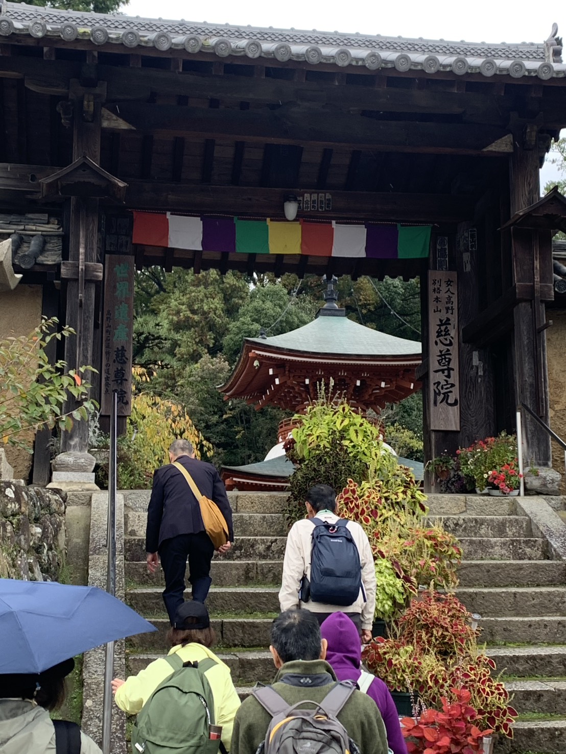 南海高野線九度山で10時にガイドさんと待ち合わせをして、二班に分かれ真田幸村が流罪されていた九度山の町を、ガイドさんの楽しい説明を聞きながら散策しました。慈尊院は、舗装されている参道から世界遺産に登録されている高野山金剛峰寺への入り口との事。出発地である町石が有り1町(109m)ごとに建てられている。本来、舗装等近代的に手を加えていたら世界遺産には認められないのが、舗装前の状態を認められて登録されたそうだ。