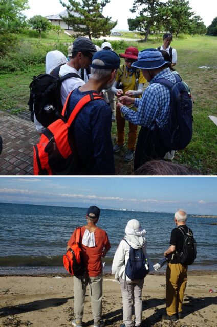 今日は,泉北高校でのビオトープ入門でお世話になった木村先生から、せんなん里海公園で浜辺の植物について学びます。猛暑は終わりましたが、まだまだ日差しは厳しい中での散策で、たくさんの植物について教えていただきました。