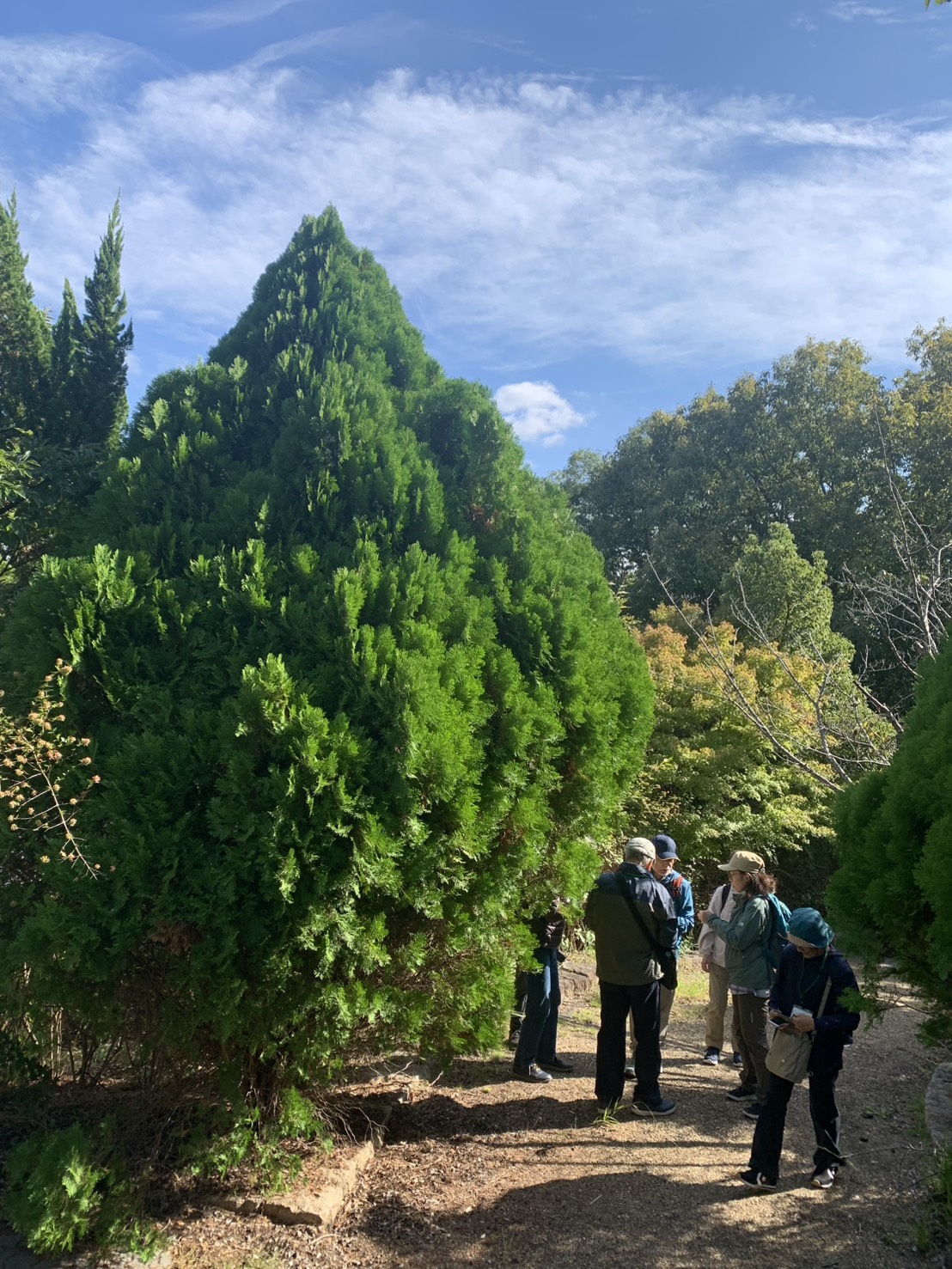 昨年の11月13日に奈良公園に来て以来、2回目の巨樹観察です。残念ながら熊の出没情報もあり若草山への登山は諦め、下のほうでの講義となりました。しかし春日大社の神域として守られてきた原始林はさすが世界遺産の荘厳さと迫力がありました。