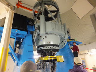青空の下、バンやカイツブリを先生のスコープでのぞく